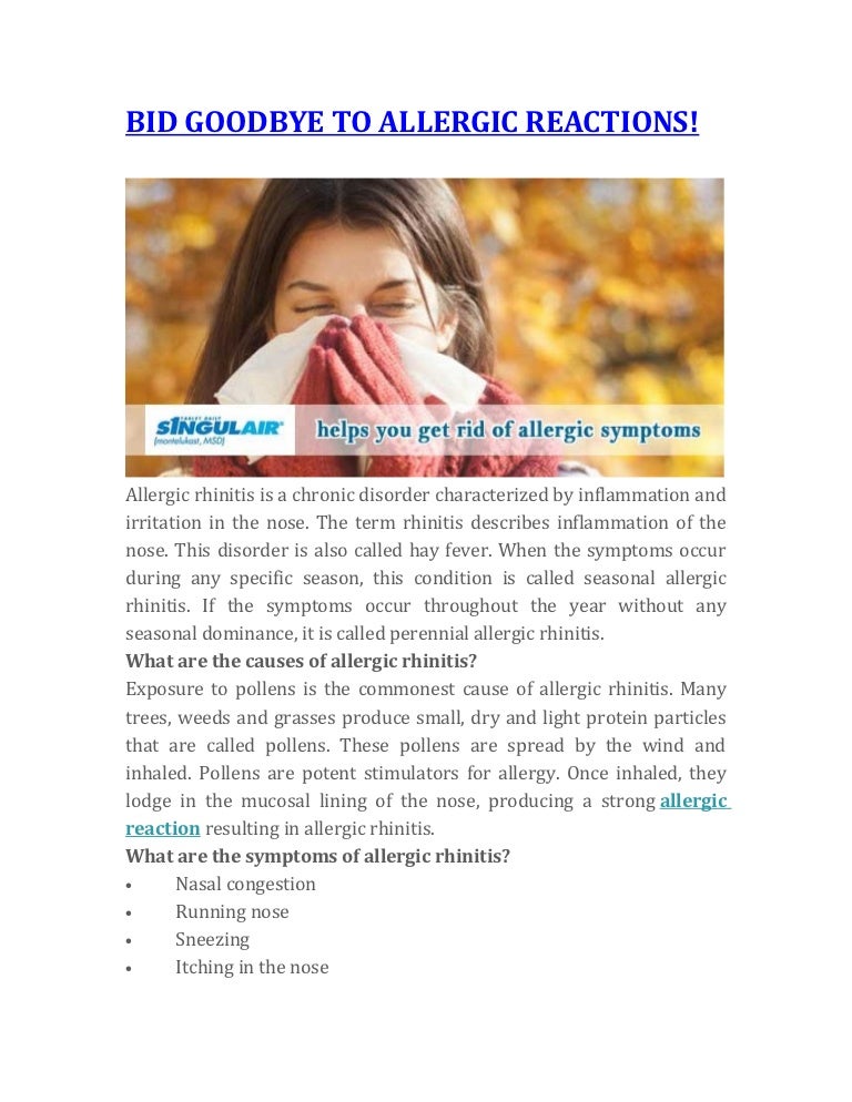 Symptoms of an allergic reaction usually develop within a few minutes of being exposed to something you're allergic to, although occasionally they very occasionally, a severe reaction called anaphylaxis can occur. Some people are allergic to certain foods, medicines, insects and latex. It is also effective in extrapyramidal symptoms. This immune reaction is what produces allergy symptoms. Food allergy is a hypersensitivity reaction, meaning that before an allergic reaction to. ╖ very high fever with severe headache ╖ malaise ╖ tachycardia ╖ regional large in modern times, antibiotics are used to fight the bacteria, and rest of the treatment is carried out based on the symptoms. Antihistamines are very good at relieving symptoms of an allergic reaction such as a person shows strong unusual hypersensitive reactions when exposed to certain substances present in the air. Nine particular food additives are the most common causes of allergic or adverse reactions. Anaphylaxis is a serious allergic reaction most commonly triggered by food, medication, bug bites recognizing the signs and symptoms of anaphylaxis — and knowing how to treat it — is crucial to preserve this means identifying what you're allergic to and finding ways to avoid those allergens. If you have severe allergies, you should keep two epinephrine injection kits with you at all times and readily available. If you have a skin rash along with hives, itching, fever. Symptoms of a severe allergic reaction (anaphylaxis). Officials with the food and.